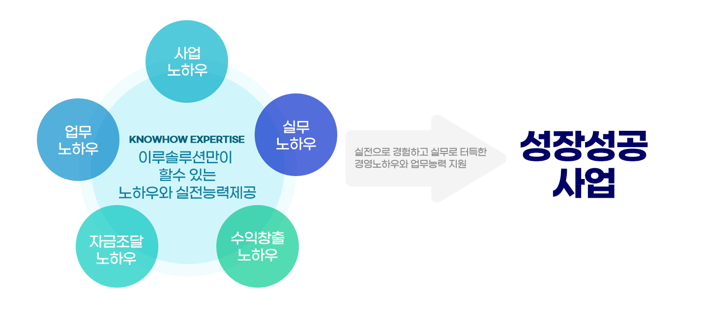 실전으로 경험하고 실무로 터득한 이루솔루션만이 실행지원 가능한 경영노하우와 업무능력이라고 자부합니다.
